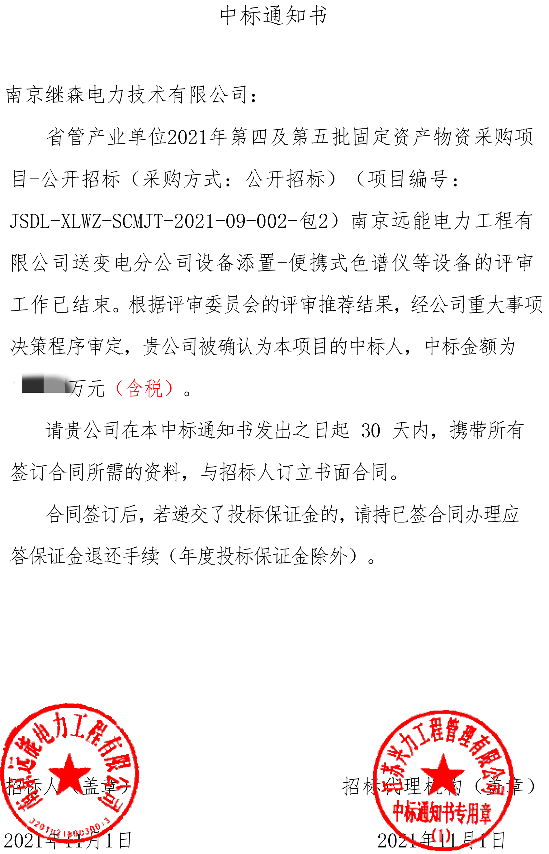國網(wǎng)江蘇省電力有限公司2021年第六次物資招標采購-中標通知