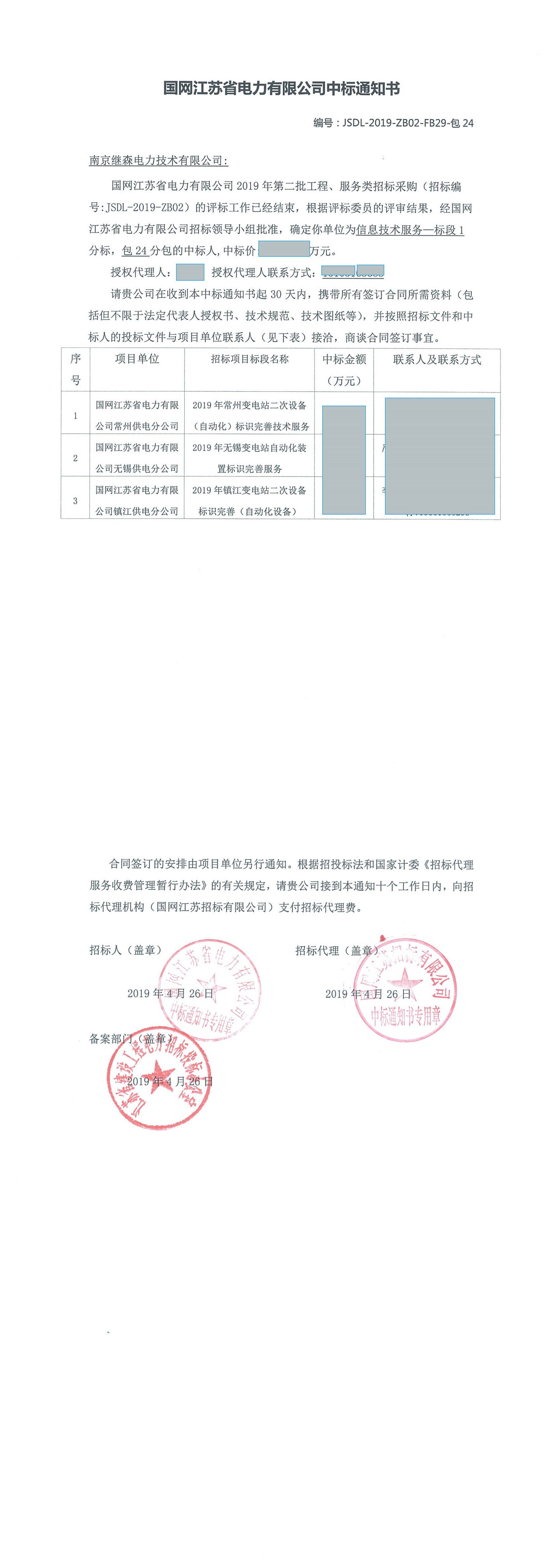 鎮(zhèn)江變電站2019年二次設(shè)備標(biāo)識(shí)完善(自動(dòng)化設(shè)備)中標(biāo)通知